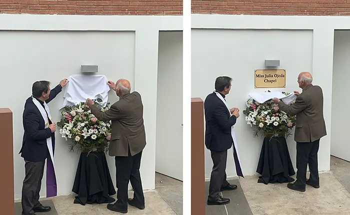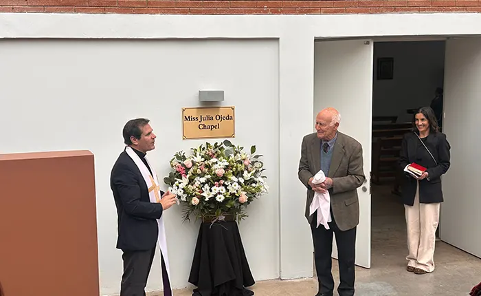 Con gran emoción se llevó a cabo la ceremonia de develación de la placa que da nombre a nuestra capilla en honor a Miss Julia Ojeda, querida fundadora de nuestro colegio. En este significativo evento, representantes de nuestra comunidad educativa se hicieron presentes para rendir homenaje y agradecer la huella imborrable que dejó en generaciones de alumnos, profesores y familias.