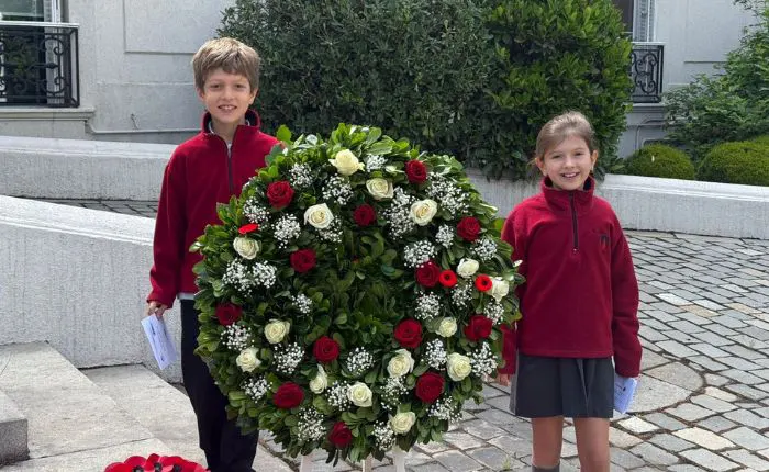 Redland School had the honour to be invited to the Armistice Day.Two of our Junior School pupils, Sofía Giribone and Nicolás Martina from 4th Básico, layed a poppy wreath in memory of the fallen in the world wars. The ceremony was held at the British Embassy Residence on Sunday November 9th.